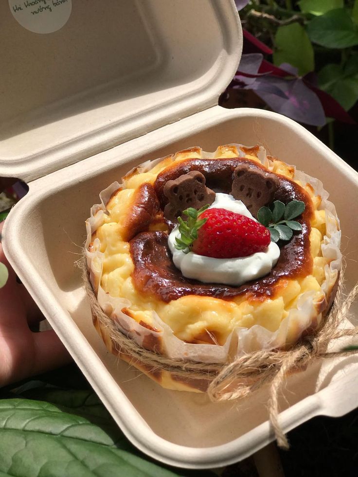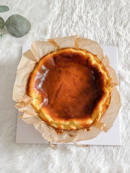 – ویژگی اصلی آن: بدون کراست (پایۀ بیسکویتی معمول) و با پوستی کاراملی-قهوهای (تا حدی «سوخته») که از پخت در دمای بالا حاصل میشود، در حالی که مرکز داخل کیک نرم و کرِمی باقی میماند.