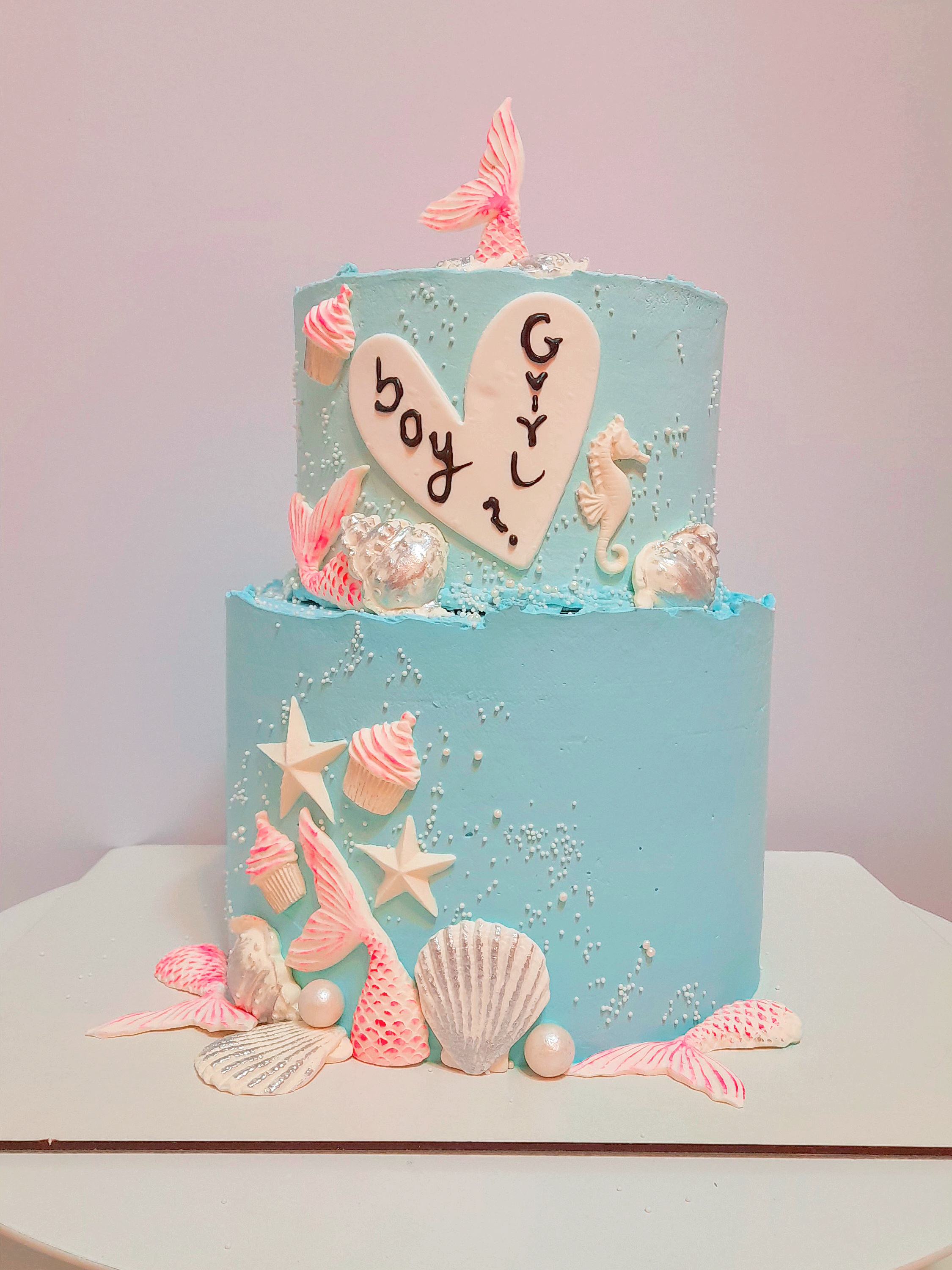 داخل این کیک خامه رنگی با توجه به جنسیت نینی سورپرایزتون میکنه.